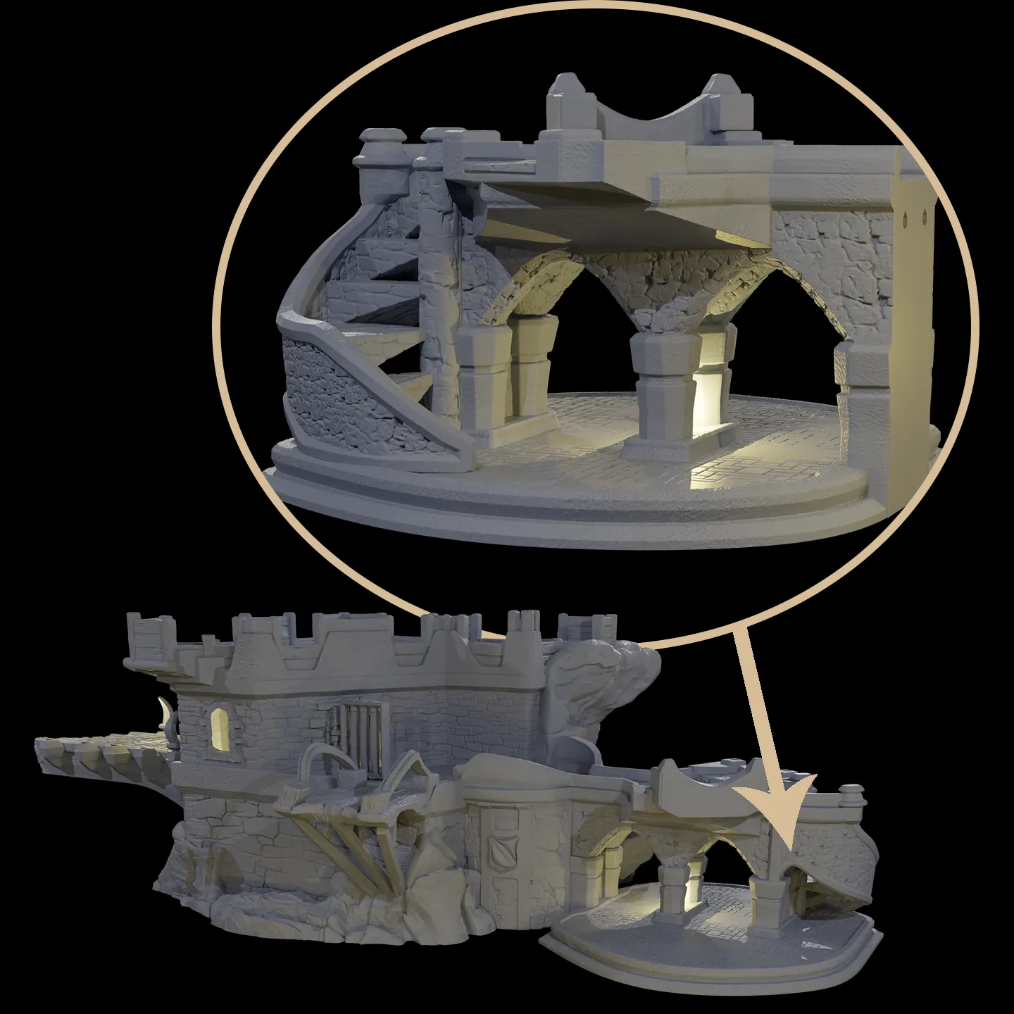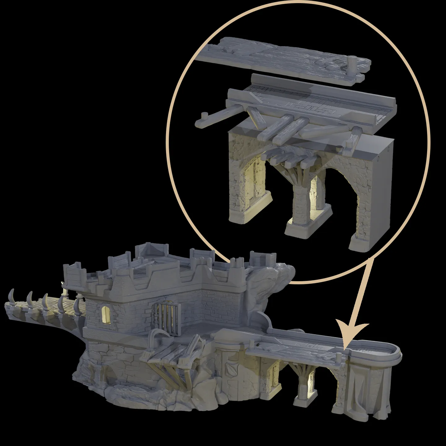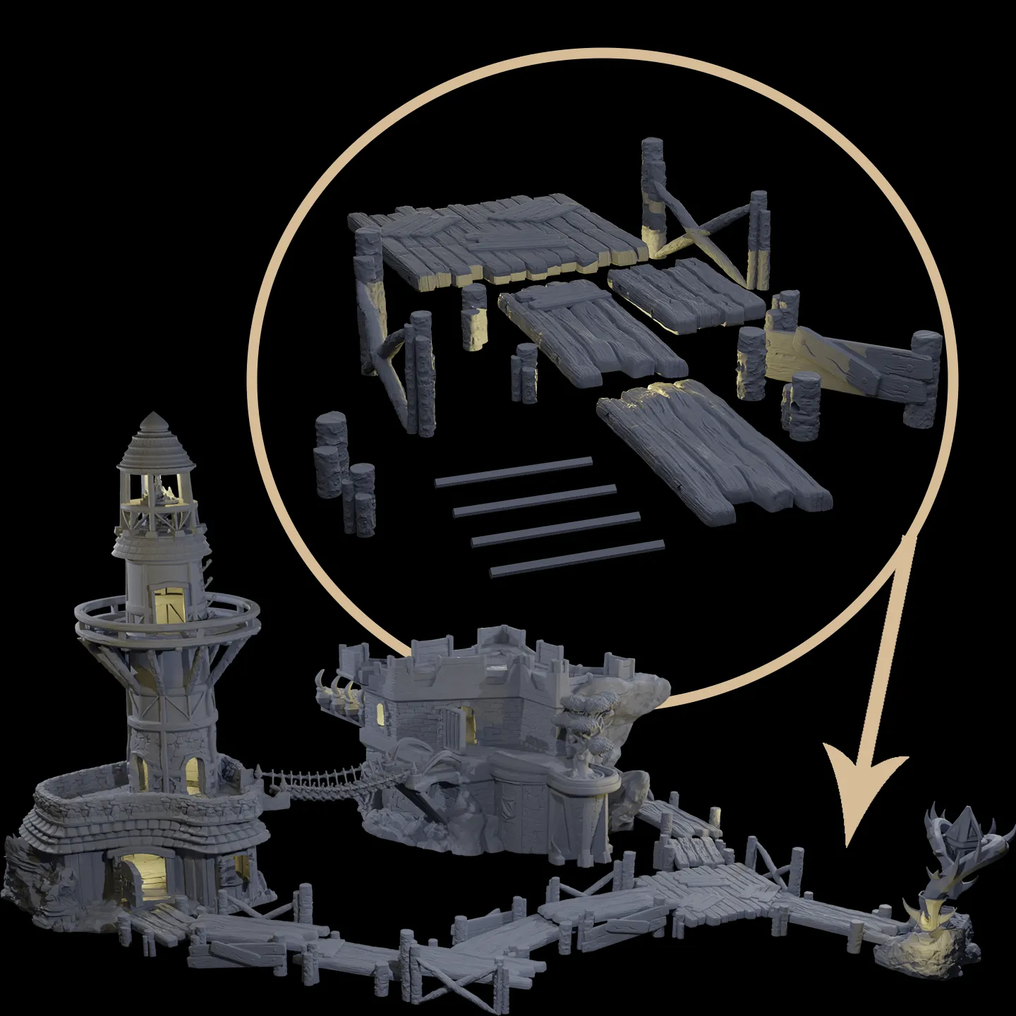 Introducing the Blackwater Refuge Part I, a fully modular waterfront castle designed to elevate your tabletop games like Dungeons & Dragons. Available as STL files, this set provides a stunning and immersive experience for players, fitting seamlessly into any campaign with ease of printing on both FDM and resin printers.