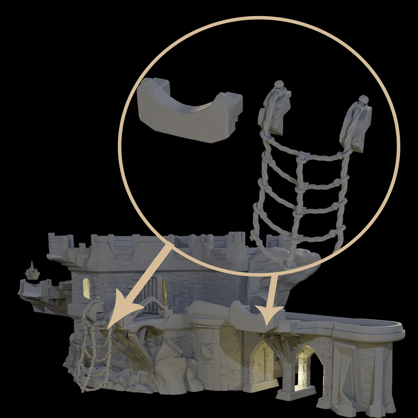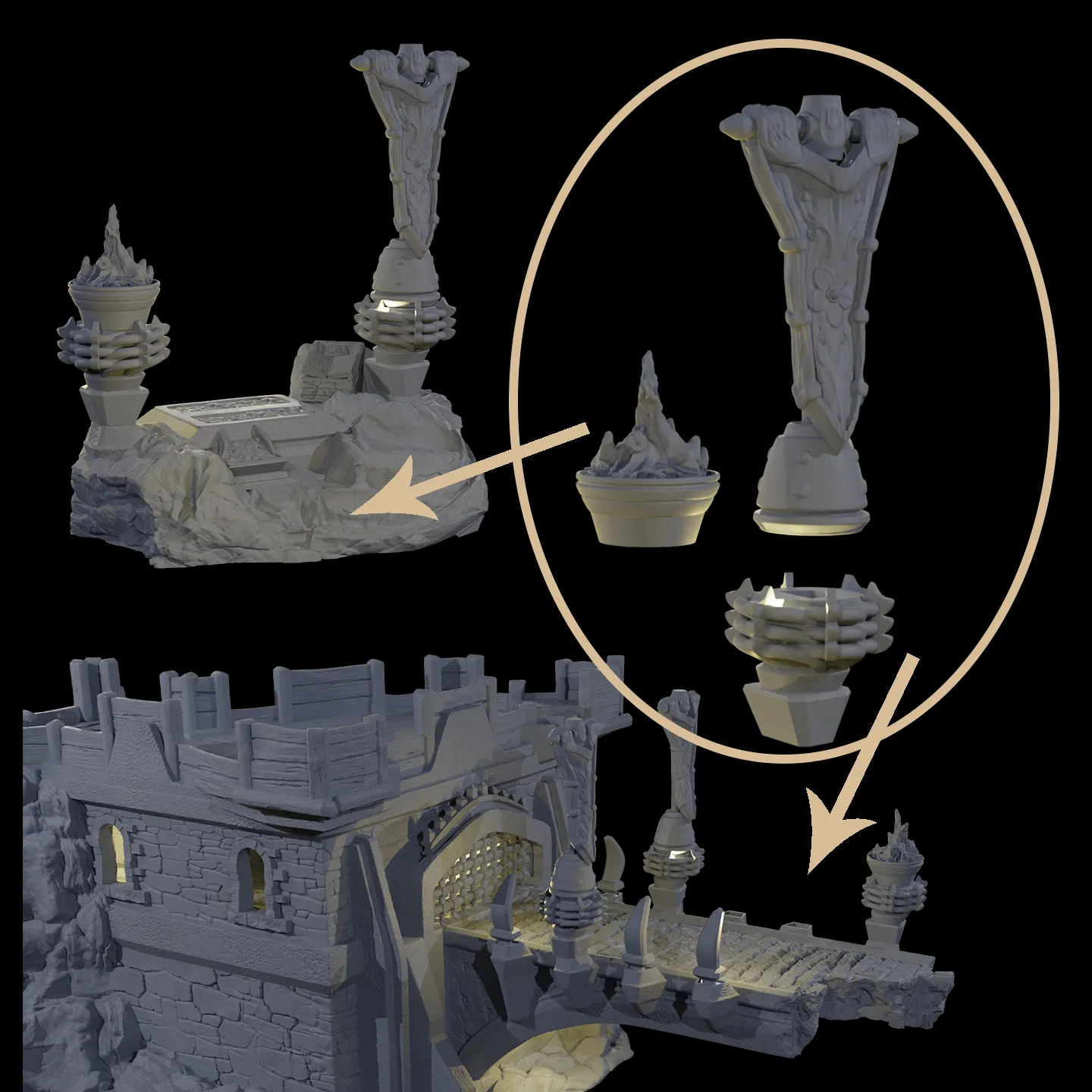 - Both the light tower and the gate tower feature detachable and openable doors and windows