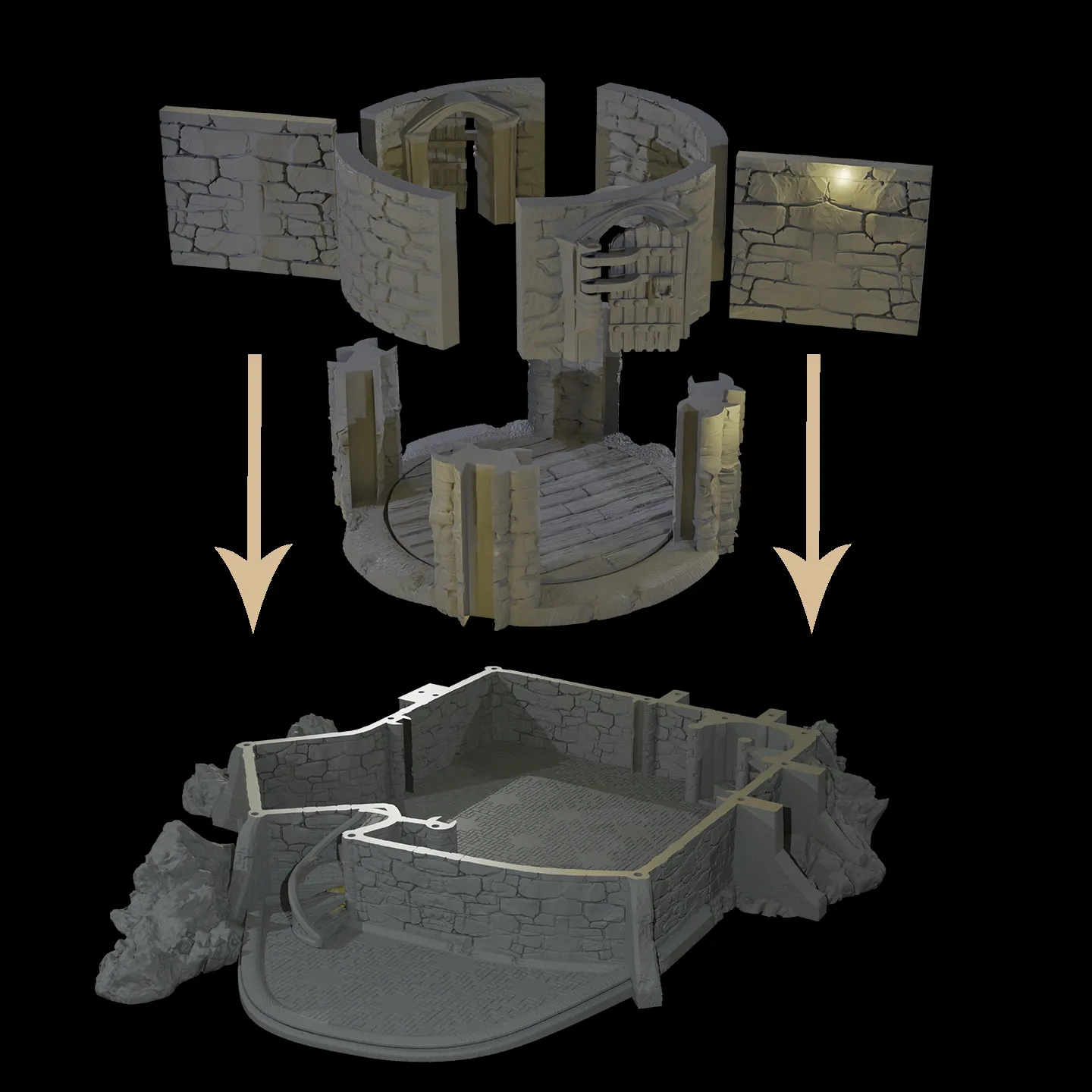 Introducing the Blackwater Refuge Part II, a fully modular waterfront castle designed to elevate your tabletop games like Dungeons & Dragons. Available as STL files, this set provides a stunning and immersive experience for players, fitting seamlessly into any campaign with ease of printing on both FDM and resin printers.